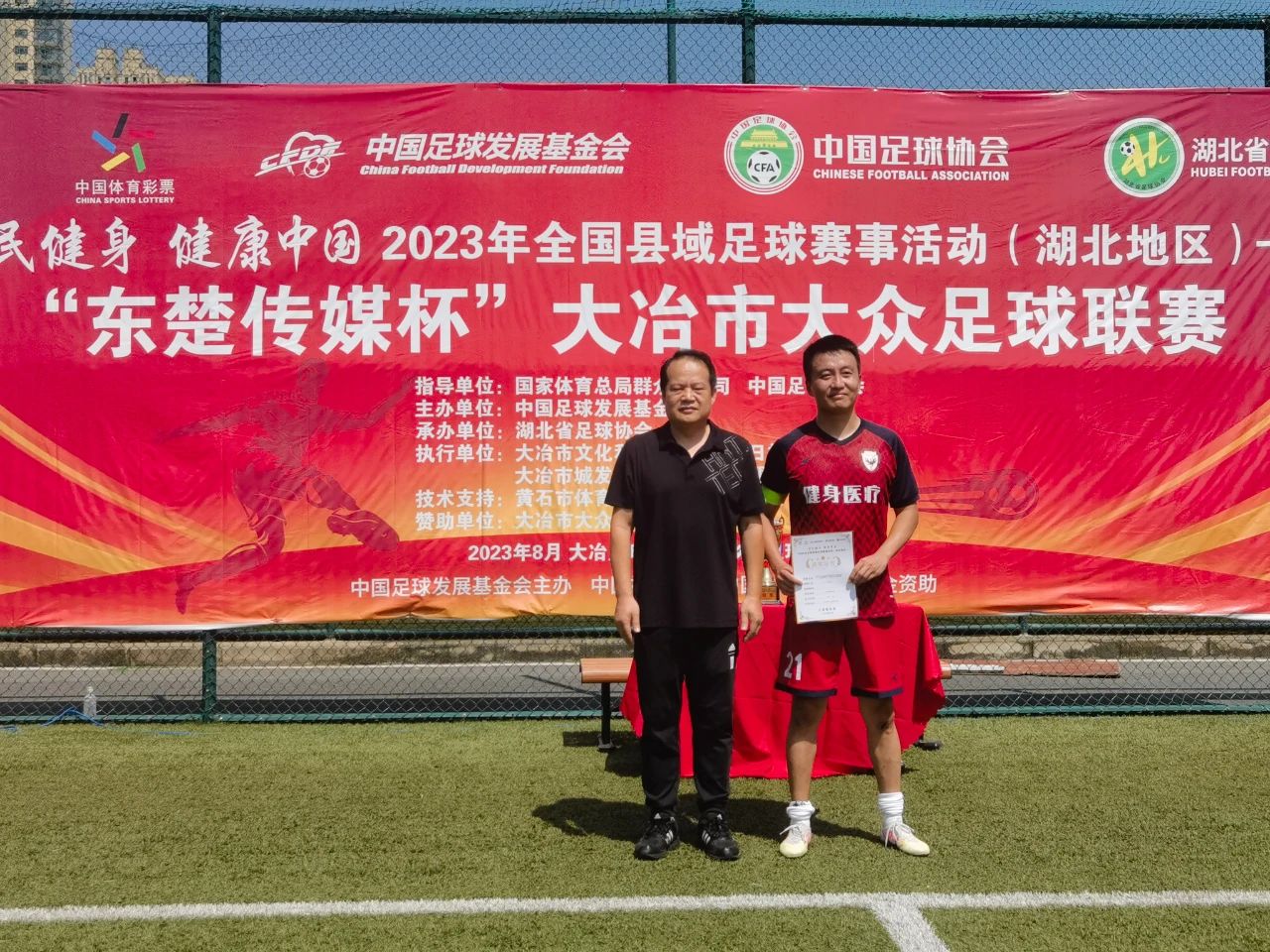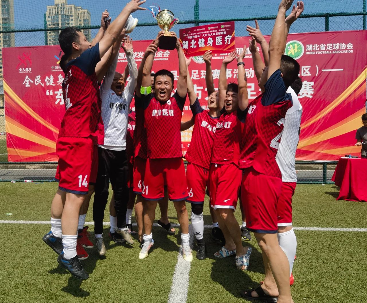 9月17日,全國縣城足球聯賽(湖北賽區)大冶市大眾足球聯賽圓滿落幕,代表湖北恒鑫參賽的湖北健身醫療足球隊勇奪冠軍。21號隊長周泉獲得最佳球員稱號。