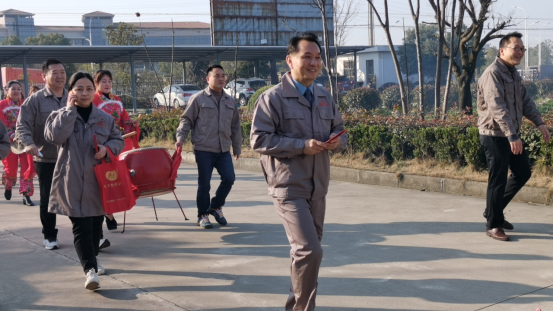 初八,新春上班第一天,公司董事長陳曉兵帶領公司腰鼓隊,給員工拜年發放新年開門紅包。