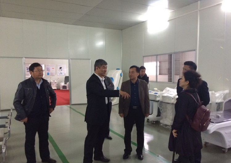 參觀考察團一行在公司領導的帶領下來到分公司湖北健身醫療器械有限公司的生產車間及產品展示區,李莉女士及劉書記對我公司的發展做出了指導及建議,胡博士對跟我公司項目進行合作實現共同目標也提出了一些想法,認同我公司是一個非常有實力的公司,并且都非??春弥嗅t康復理療設備的前景。