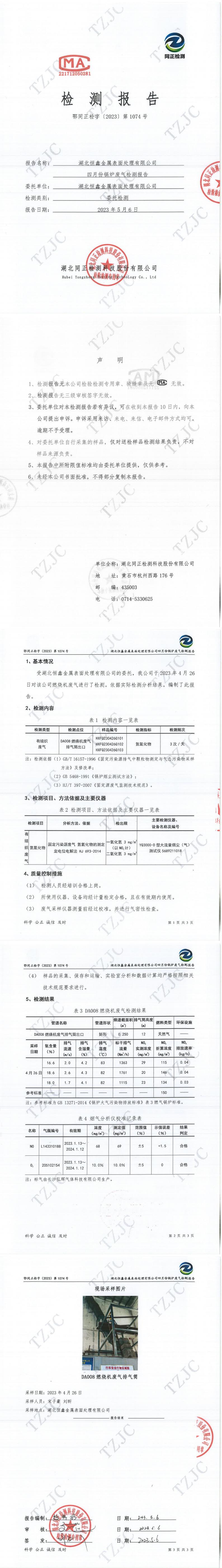 湖北恒鑫金屬表面處理有限公司五月份鍋爐廢氣檢測(cè)報(bào)告