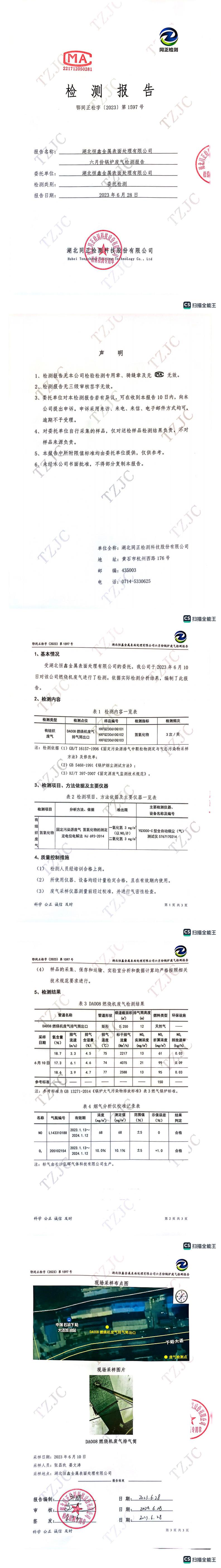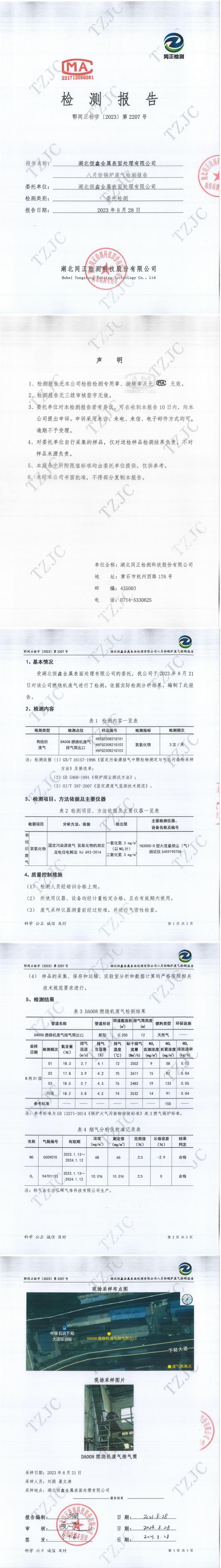 湖北恒鑫金屬表面處理有限公司八月份鍋爐廢氣檢測(cè)報(bào)告