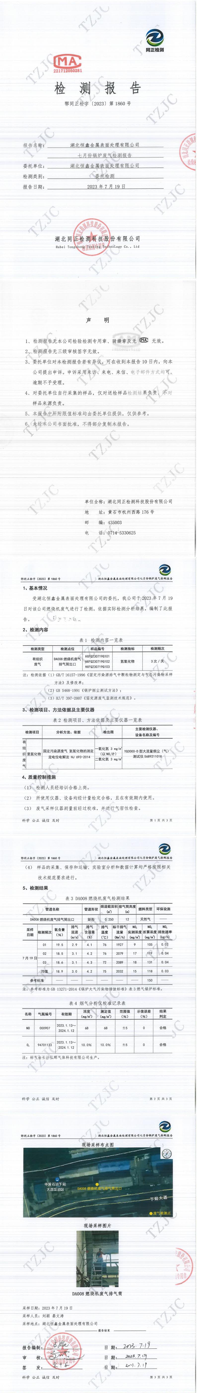 湖北恒鑫金屬表面處理有限公司七月份鍋爐廢氣檢測(cè)報(bào)告