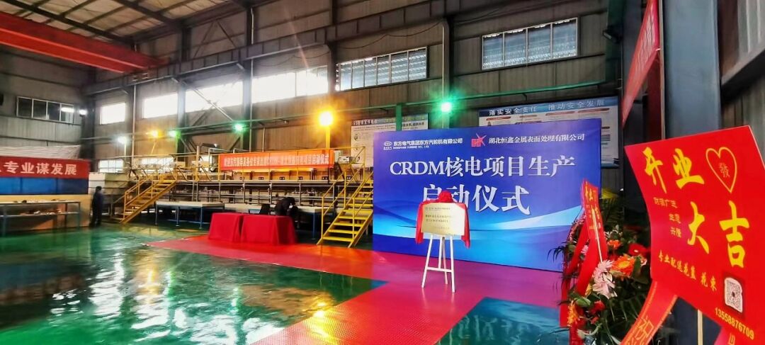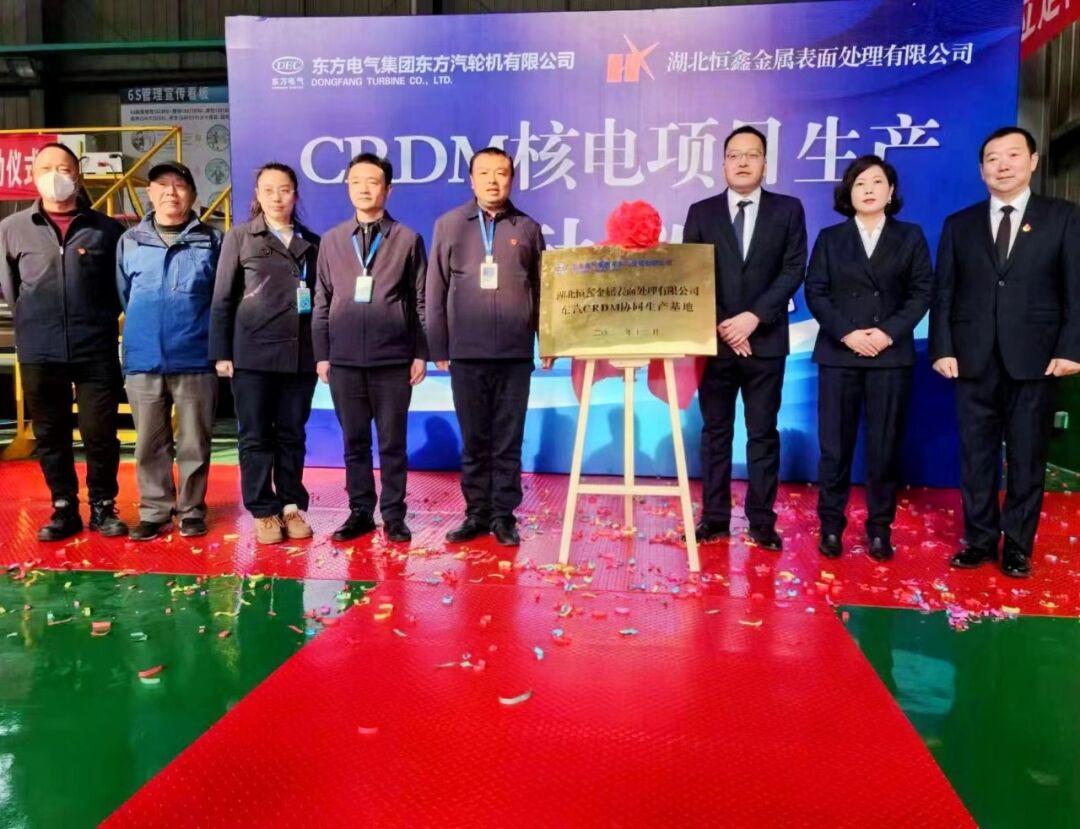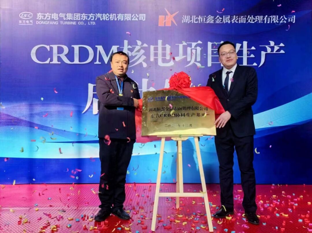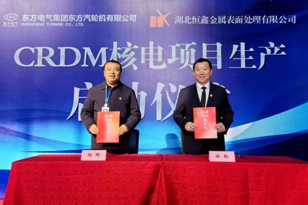 在開業當天,還舉行了東方汽輪機有限公司與湖北恒鑫金屬表面處理有限公司CRDM核電項目生產啟動儀式。出席啟動儀式的東方汽輪機CRDM總經理楊暉在致辭中表示,東方汽輪機將與湖北恒鑫強強聯合,打造中國CRDM核電項目新標桿。